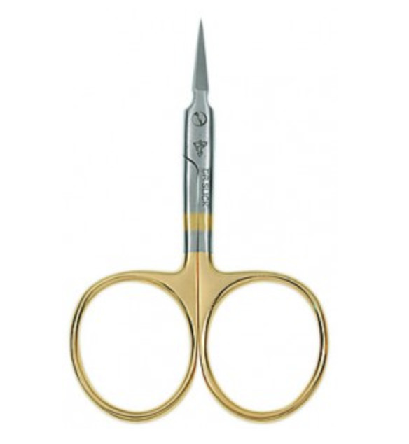Short fine-bladed scissor designed for small flies and detail work. The notch at the base of the blades is designed for cutting wire and lead. Excellent for natural materials and can handle most synthetics. Great scissor for in-hand tyers.
